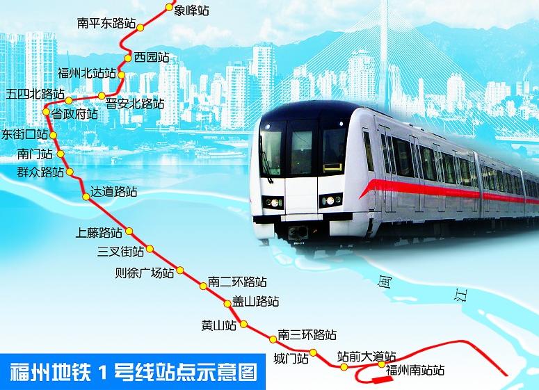 福州市城市軌道交通1號(hào)線作為線網(wǎng)中的南北向主干線,全長(zhǎng)29.2公里,北起新店北部秀峰路,南至東部新城,其中地下24.55公里,高架線4.0公里,敞開(kāi)段0.65公里。沿線共設(shè)24個(gè)站點(diǎn),車(chē)站間距為1.896公里,站間距為0.869公里,平均站間距1.237公里,線路敷設(shè)方式為全地下。車(chē)站采用明挖法施工,區(qū)間施工一般為盾構(gòu)法。1號(hào)線計(jì)劃2009年年底開(kāi)始建設(shè),2014年底試運(yùn)營(yíng)通車(chē)。[9]其北連新店居住區(qū)、鐵路福州站,經(jīng)市中心,向南深入重點(diǎn)發(fā)展地區(qū)——南臺(tái)島,連接在建的福州火車(chē)南站大型交通樞紐,規(guī)劃的東部新城串聯(lián)晉安、鼓樓、臺(tái)江、倉(cāng)山四區(qū),與城市"南進(jìn)"發(fā)展吻合。這條線建成后將成為連接福州市南、北火車(chē)站及城市商業(yè)中心、行政中心的城市公共交通重要通道