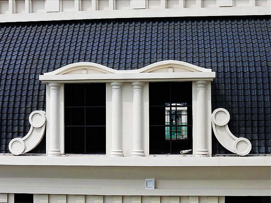 項目的B座為商住樓建筑,呈現(xiàn)出歐式風格。建筑的外觀均為經(jīng)典的灰白配色,外墻則采用了廣西青龍化學建材有限公司生產(chǎn)的歐式構(gòu)件作為裝飾,包括羅馬柱、窗框裝飾構(gòu)件、建筑線條,雕塑等,從細微處展現(xiàn)出建筑的非凡品質(zhì)。此外,建筑頂部的幾層和裙樓部分也大量地采用了歐式構(gòu)件,從而將古典歐式建筑的精髓演繹到好的,成為了南寧商住樓建筑的新標桿。