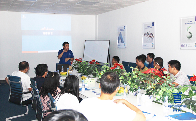 家居防水事業(yè)部總經理于超軍為大家具體分析家裝市場的營銷技巧和方法策略。于總的講解,幽默風趣,又不乏睿智專業(yè),讓大家豁然開朗,頓悟到行業(yè)燦爛錢景!