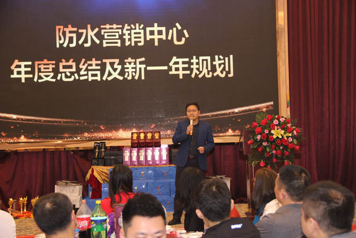 防水營(yíng)銷(xiāo)中心營(yíng)銷(xiāo)總監(jiān)賀金龍作《年度總結(jié)和新一年計(jì)劃》,他指出2019年是一個(gè)充滿(mǎn)挑戰(zhàn)的一年,要求大家有危機(jī)意識(shí),按照公司戰(zhàn)略計(jì)劃,不斷學(xué)習(xí),不斷創(chuàng)新,為公司、個(gè)人的發(fā)展取得更大進(jìn)步。