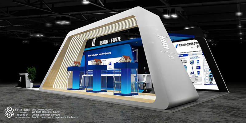 青龍防水展館整體呈現(xiàn)出極簡流線型的,如公司防水涂料流水般的圓滑流暢風(fēng)格。它在原有青龍藍(lán)的基調(diào)基礎(chǔ)上加入咖啡色作為誘導(dǎo),讓整個空間色彩飽滿豐富,既有時尚大氣的熱情奔放,也有極簡輕奢的科技風(fēng)范。