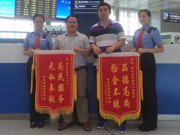 弘揚(yáng)社會(huì)正能量,青龍公司為南寧東站客運(yùn)中心陳芳女士拾金不昧點(diǎn)贊