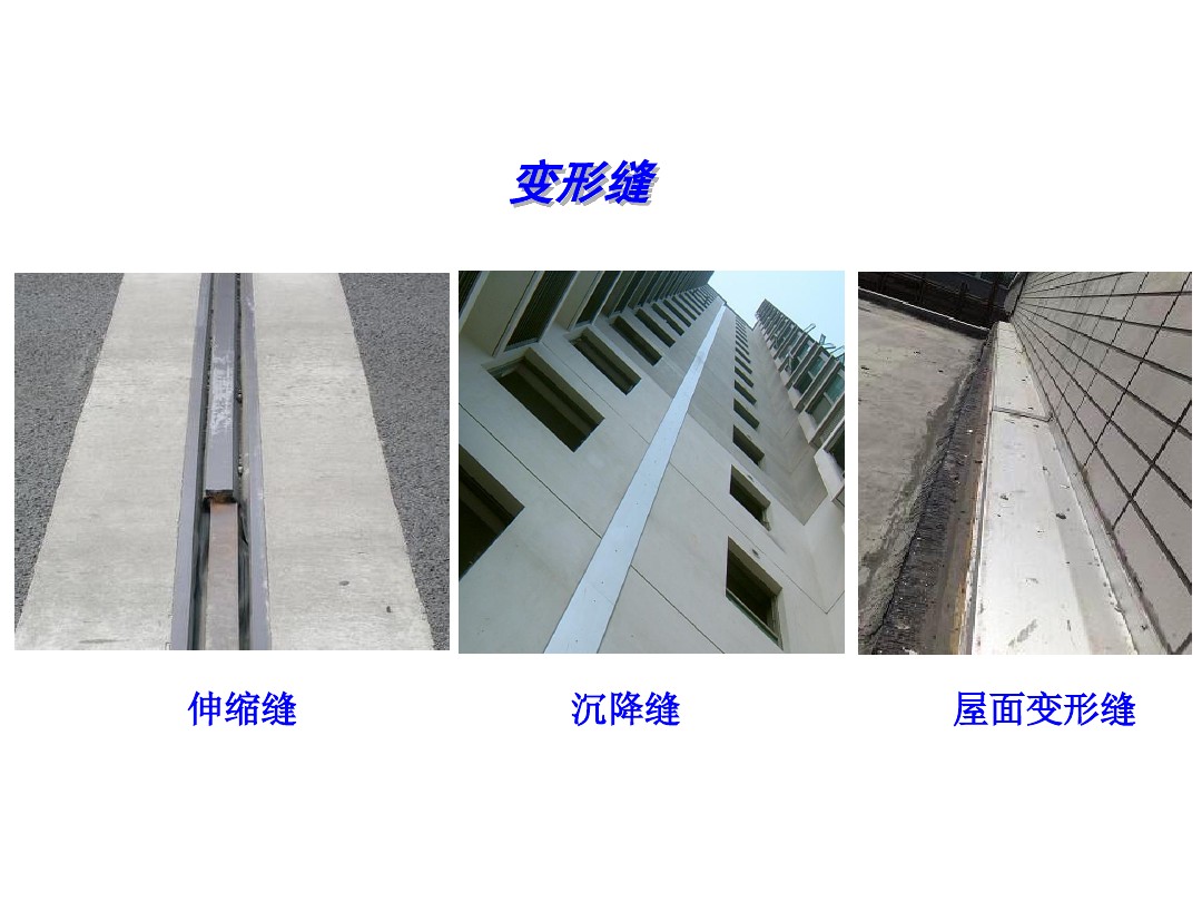 8、變形縫:變形縫是伸縮縫(溫度縫)、沉降縫和抗震縫的總稱。①伸縮縫是指為克服建筑物構(gòu)件由于氣候溫度變化(熱脹冷縮),而設(shè)置的縫基礎(chǔ)不斷開(受溫差影響小)。②沉降縫是為克服建筑物結(jié)構(gòu)由于地基不均勻沉降引起房屋破壞而設(shè)置的垂直縫,從基礎(chǔ)到上部結(jié)構(gòu)全部分開。③抗震縫是指避免建筑物破壞,按抗震要求設(shè)置的垂直的構(gòu)造縫。
