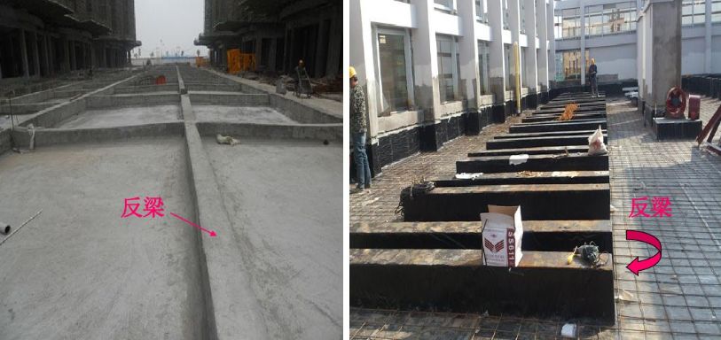 10、反梁:反梁只是一種需要,是因?yàn)槟承┰颍ㄈ鐚痈卟粔?、梁底面需要平整,而梁上部又可上翻等),而把梁高的一部分作到樓板的上方(一般的梁都是與樓板平的)或者是筏板基礎(chǔ)上表面需要平整而把梁做到板的下面。