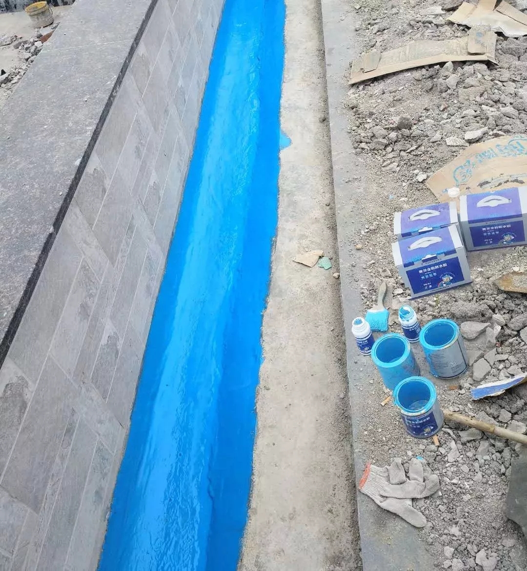 清除女兒墻面至結構層,屋面平面打鑿至原防水層,距離女兒墻根500mm,并將距離女兒墻根300mm打鑿至結構層。用鋼絲刷清理灰塵異物后,查找裂縫孔洞等結構缺陷,清理并噴涂防水劑,采用水不漏分層填堵結構缺陷。水不漏達到強度后,涂刷改性環(huán)氧樹脂并內(nèi)襯碳纖維布為結構補強;女兒墻上抹10mm厚聚合物防水砂漿,墻根做50mm直徑圓弧角,待女兒墻聚合物防水砂漿抹灰達到強度后,涂刷2mm厚水固化聚氨酯防水涂料,與原防水層搭接不低于100mm。