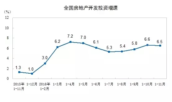 (1)2016年1-11月份,全國(guó)房地產(chǎn)開(kāi)發(fā)投資93387億元,同比名義增長(zhǎng)6.5%,住宅投資62588億元,增長(zhǎng)6.0%,住宅投資占房地產(chǎn)開(kāi)發(fā)投資的比重為67.0%。