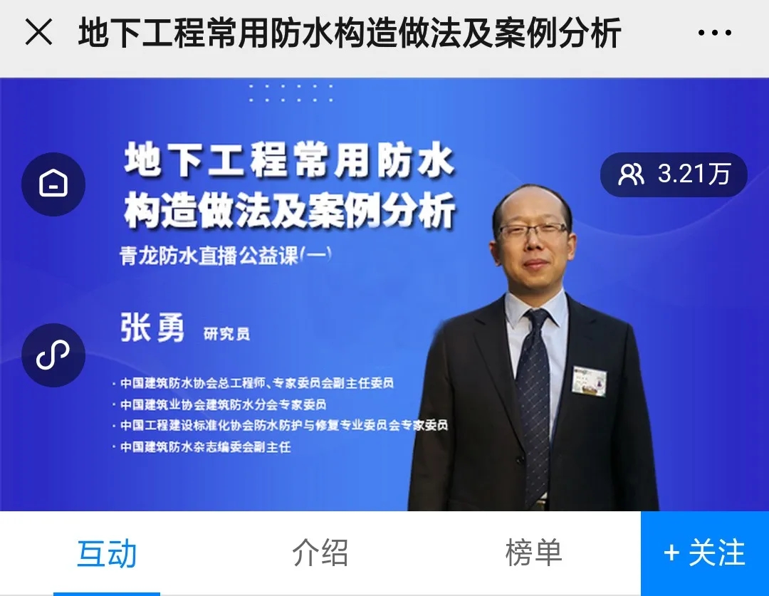 防水公益直播大講堂,今晚主講外墻防水技術(shù)