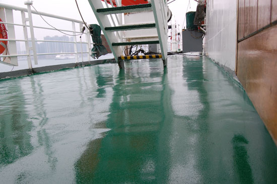 接到該訂單后,3月21日,公司派一支素質(zhì)過硬的施工隊(duì)伍奔赴香港開始作業(yè),由于期間香港天氣變化反復(fù),時(shí)常下雨;待基面底漆頑固,銹跡斑斑難以清理,均為凹凸不平的麻面;再加上該郵輪白天需正常營(yíng)業(yè),施工多只能在晚上進(jìn)行,等等一系列因素都給施工帶來了嚴(yán)峻考驗(yàn)。青龍公司歷來重視每一筆訂,注重每一個(gè)細(xì)節(jié),董事長(zhǎng)宋敦清先生得知后,親自前往,與公司總工徐新生論證了一個(gè)較好方案后開始指導(dǎo)施工,考慮到施工部位特殊,長(zhǎng)期在海面上風(fēng)吹日曬,之后選用了其耐候、耐酸堿、耐紫外線、耐老化、耐霉菌、耐鹽霧、耐臭氧、耐溶劑、耐磨、耐沖擊和耐油性等綜合性能優(yōu)異的