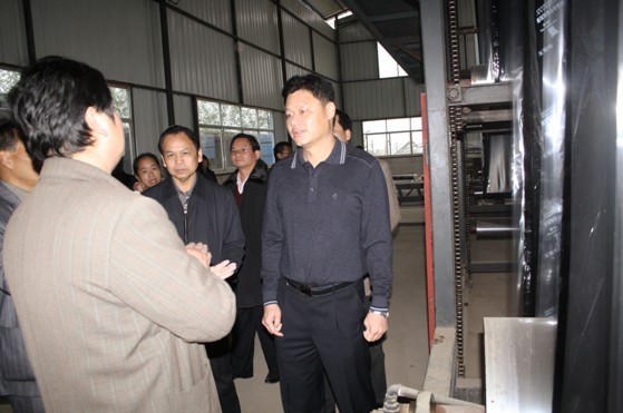 圖為隆安縣縣長陳竑(右)視察廣西青龍車間