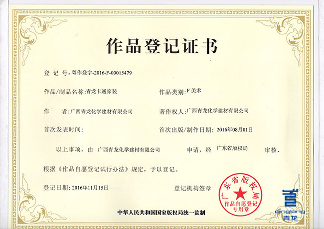 近日,青龍卡通家裝和工裝(粵作登字-2016-F-00015479和粵作登字-2016-F-00015480)順利通過廣東省版權(quán)局審核,予以登記。自2016年11月15日起,青龍卡通家裝/工裝設(shè)計,將受法律保護(hù),版權(quán)所有,侵權(quán)必究。
