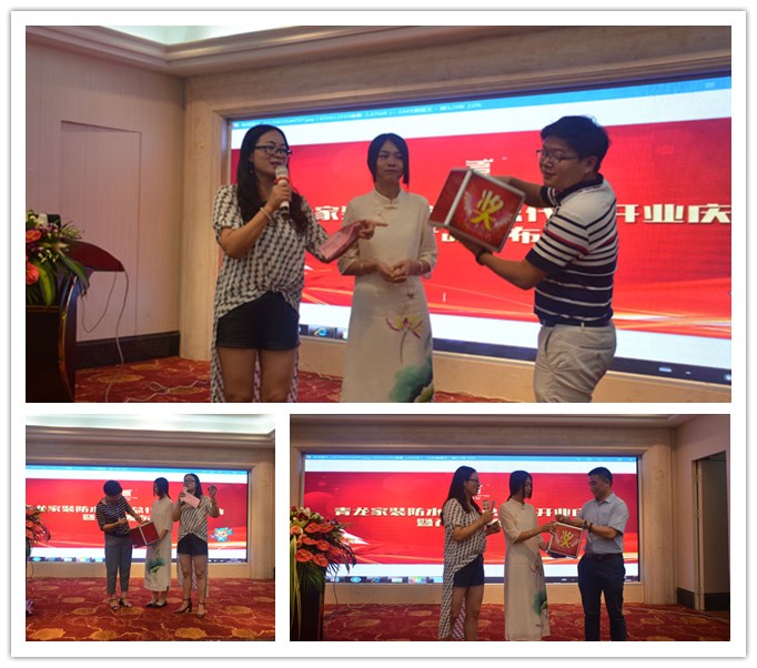 在答謝午宴上,賓客滿席,董老板、青龍營(yíng)銷總監(jiān)賀總、青龍家裝營(yíng)銷于總、青龍質(zhì)量總監(jiān)張總和專賣店技術(shù)工程師周工分別上臺(tái)進(jìn)行了分享。午宴中還穿插了精彩的文藝節(jié)目和豐富的活動(dòng),將現(xiàn)場(chǎng)氛圍推向高潮。廣大來賓在一片歡聲笑語中,不僅學(xué)習(xí)了更多的創(chuàng)業(yè)經(jīng)驗(yàn)和防水知識(shí),也拓展了人際網(wǎng)絡(luò),愉快地度過了這個(gè)美好的正午。