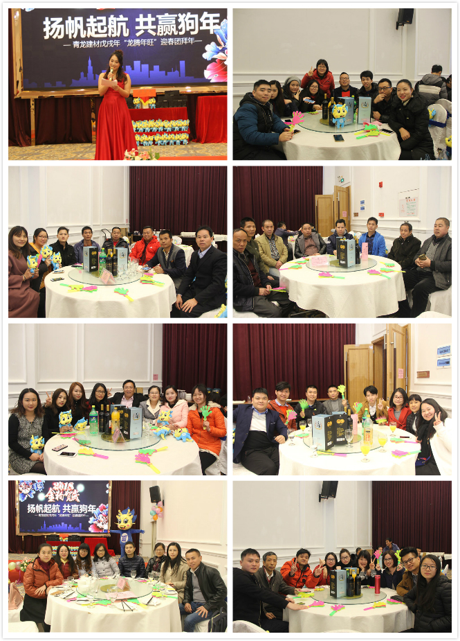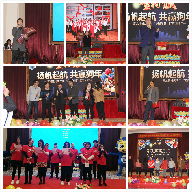 2018年2月7日,青龍建材中山公司2017年年終總結(jié)表彰大會(huì)及2018迎新年會(huì)在中山維出納國(guó)際酒店隆重舉行,青龍董事長(zhǎng)宋敦清、營(yíng)銷總監(jiān)賀金龍、招商總監(jiān)周炳陽(yáng)、家裝事業(yè)部總經(jīng)理于超軍、質(zhì)量總監(jiān)張科、中山工廠廠長(zhǎng)劉文學(xué)、方文軍以及青龍中山公司、港口工廠、三角工廠全體員工參加了盛會(huì)。晚會(huì)還現(xiàn)場(chǎng)連線了青龍海南環(huán)球100GRC工廠和馬來(lái)西亞森林城市防水工地。晚會(huì)繼往開(kāi)來(lái),精彩紛呈,其樂(lè)融融,取得了圓滿的成功!