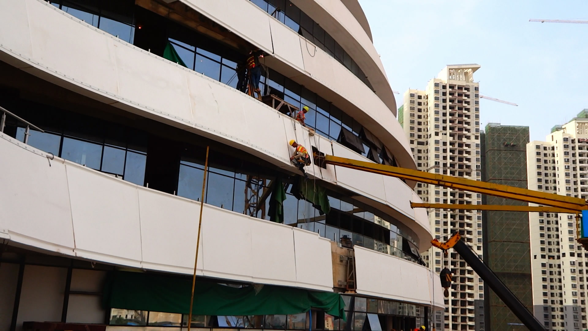 青龍公司作為國內(nèi)GRC領(lǐng)域的知名企業(yè),承接了新媒體中心三座主體結(jié)構(gòu)的雙曲面外墻板項(xiàng)目。由于所有的面板沒有一片完全相同,不僅要經(jīng)受高空風(fēng)雨的侵蝕,相鄰兩塊更要緊密榫合,天衣無縫,并在整體上形成流線性美感,因此需要制作大量的模具,工程極為繁瑣。但青龍GRC團(tuán)隊(duì)克服重重困難,從圖紙深化設(shè)計(jì)、彩色GRC選材、造型產(chǎn)品生產(chǎn)到安裝施工等一系列工序中都做到極致,讓甲方和監(jiān)理都非常滿意。