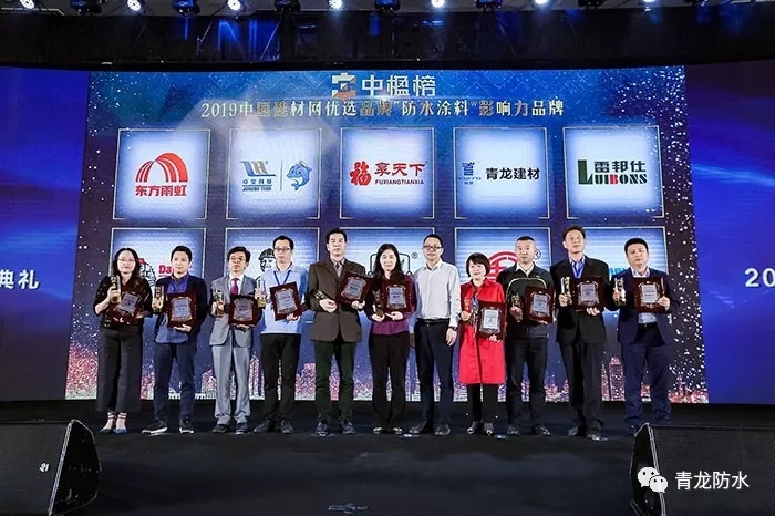 2019年5月9日,以"聚焦精裝,共筑未來(lái)"為主題的2019房地產(chǎn)供應(yīng)鏈發(fā)展峰會(huì)暨"中楹磅"中國(guó)建材網(wǎng)優(yōu)選品牌頒獎(jiǎng)典禮在廣州香格里拉酒店隆重舉行,青龍建材應(yīng)邀出席,同時(shí)憑借品牌實(shí)力和市場(chǎng)影響力成功榮獲防水材料影響力品牌獎(jiǎng),這是對(duì)青龍公司長(zhǎng)期以來(lái)的品牌經(jīng)營(yíng)和市場(chǎng)拓展的肯定與褒獎(jiǎng)。