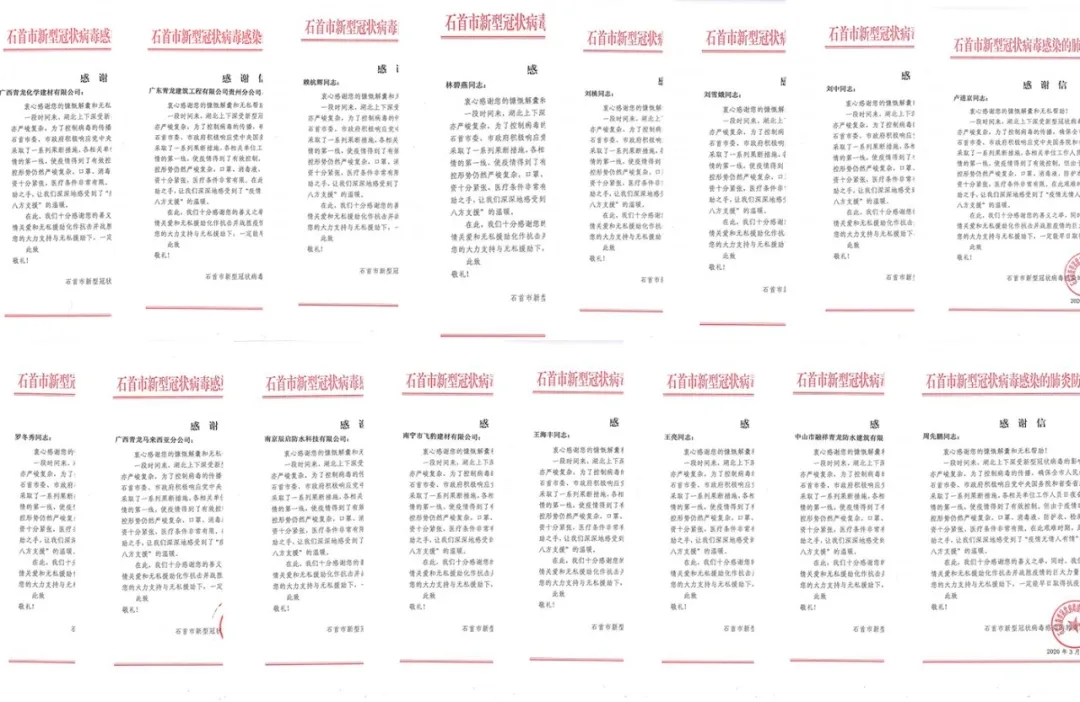 當(dāng)全國(guó)疫情數(shù)據(jù)持續(xù)向好,各地復(fù)工復(fù)產(chǎn)有序進(jìn)行的時(shí)候。青龍公司收到了來(lái)自湖北省石首市新型冠狀病毒感染的肺炎防控指揮部16封特殊的感謝信。