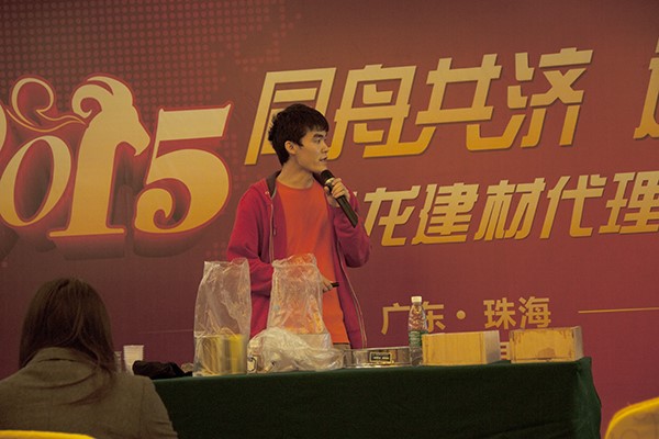 年會(huì)會(huì)議上,青龍防水材料質(zhì)量總監(jiān)張科首先介紹了青龍最新推出的兩款產(chǎn)品:青龍三號(hào)防水透明膠和高滲透環(huán)氧灌漿材料,詳細(xì)分析了其特點(diǎn),優(yōu)勢和應(yīng)用前景,指出,這兩款新防水材料相比傳統(tǒng)防水材料具有明顯的防水效果,將會(huì)為代理商帶來新的競爭優(yōu)勢,并以實(shí)例演示展現(xiàn)青龍三號(hào)防水透明膠的防水性能。
