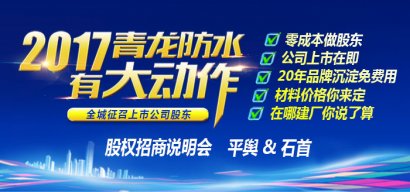 2017年青龍防水有大動(dòng)作,股權(quán)招商會(huì)即將開(kāi)啟
