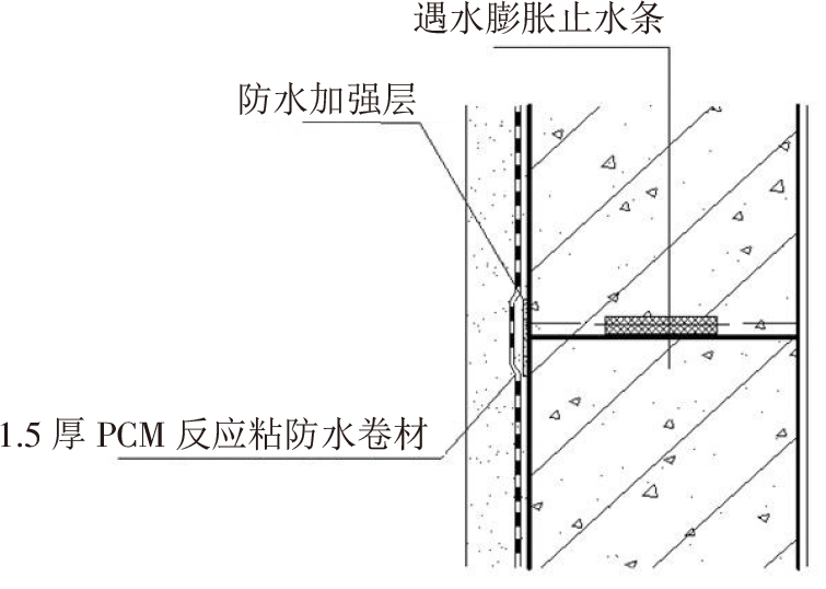 本工程項目地下室防水根據(jù)相關要求設計為一級防水,鋼筋混凝土抗?jié)B等級為P8,主要部位防水設計見圖2—5。