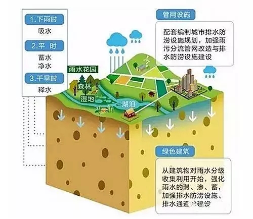 海綿城市是新一代城市雨洪管理概念,是指城市在適應(yīng)環(huán)境變化和應(yīng)對(duì)雨水帶來(lái)的自然災(zāi)害等方面具有良好的“彈性”,也可稱之為“水彈性城市”。下雨時(shí)吸水、蓄水、滲水、凈水,需要時(shí)將蓄存的水“釋放”并加以利用。